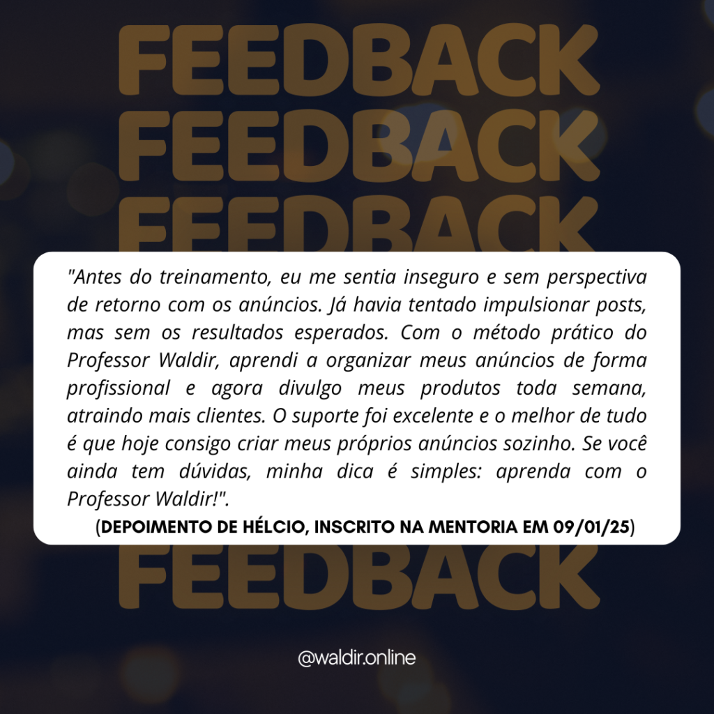 O propósito de criar essa mentoria é de mostrar que você mesmo pode fazer os seus anúncios e que a partir de R$ 7,00 por dia você pode anunciar 4, 8, 15 produtos por mês e com isso economizar com prestador de serviço.