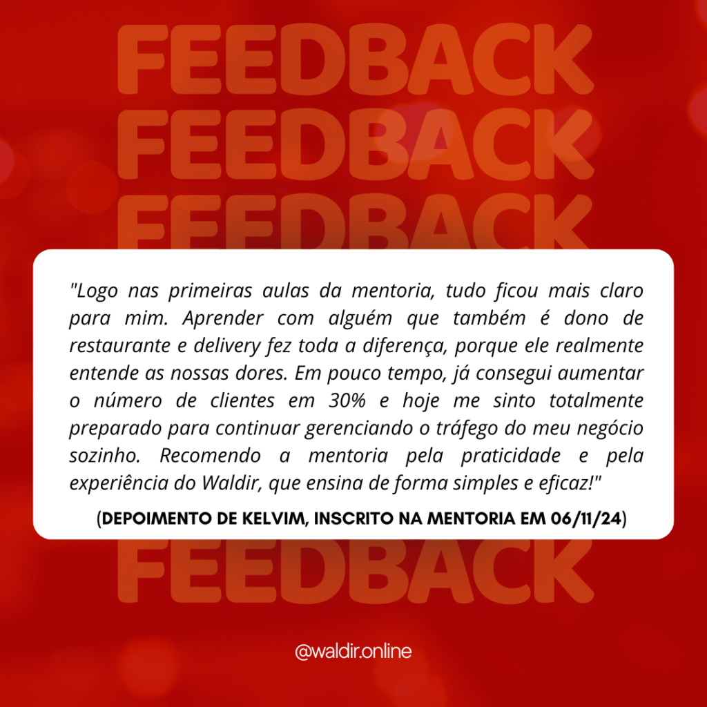 Meu nome é Waldir Sarkis! Eu também sou dono de restaurante e de delivery, gestor de tráfego e ensino outros empresários do ramo a fazer seus próprios anúncios sem ter que investir muito dinheiro e tempo.
